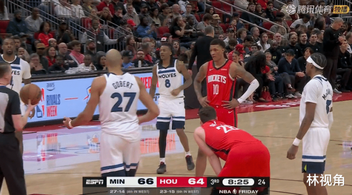 最终,火箭110-105战胜森林狼。