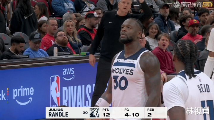 兰德尔三分命中,帮助森林狼止血。